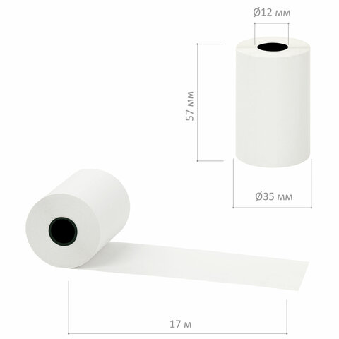 Чековая лента ТЕРМОБУМАГА 57 мм (диаметр 35 мм, длина 17 м, втулка 12 мм) КОМПЛЕКТ 12 шт., BRAUBERG, 115232
