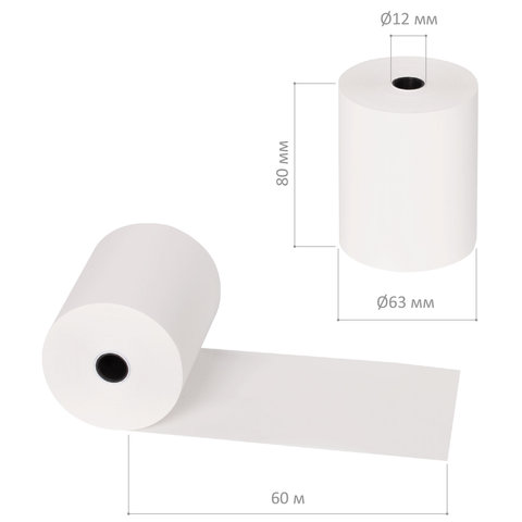 Чековая лента ТЕРМОБУМАГА 80 мм (диаметр 63 мм, длина 60 м, втулка 12 мм) КОМПЛЕКТ 9 шт., BRAUBERG, 110887