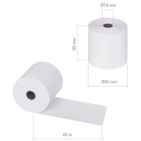 Чековая лента ТЕРМОБУМАГА 80 мм (диаметр 80 мм, длина 80 м, втулка 18 мм) КОМПЛЕКТ 6 шт., BRAUBERG, 110896
