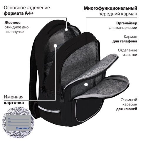 Серия универсальных рюкзаков BRAUBERG INTENT предназначена для учеников, которые предпочитают сдержанный, лаконичный стиль. Размер и организация отделений рюкзака идеально подходят для школьников всех возрастов.