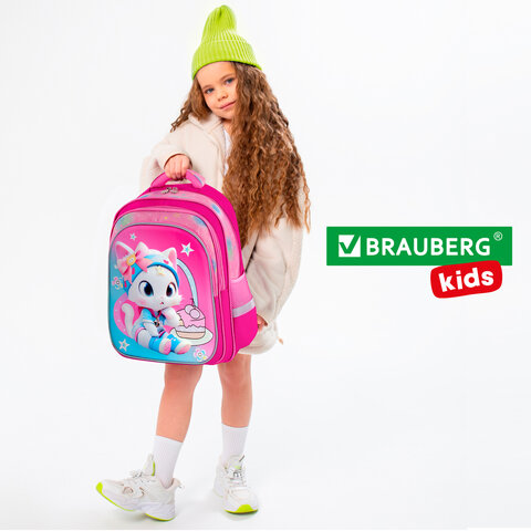 Рюкзак BRAUBERG KIDS FLOSSY, 2 отделения, 3 кармана, "Sweet Kitten", 3D-панель, 40х28х18 см, 273180