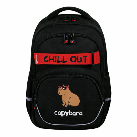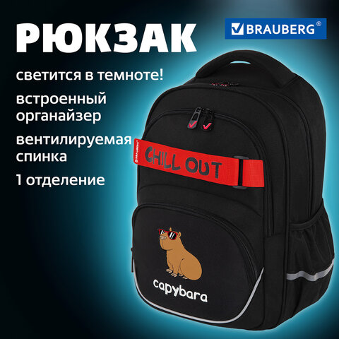 Рюкзак BRAUBERG MOTION, 2 отделения, 3 кармана, "Calm capy", СВЕТЯЩИЙСЯ, 41х28х17 см, 272032
