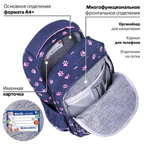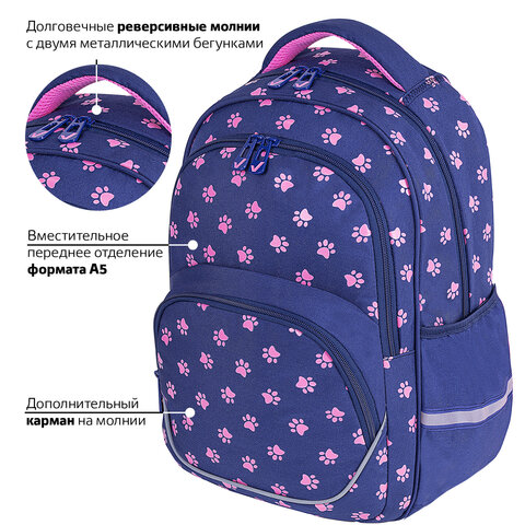 Рюкзак BRAUBERG MOTION, 2 отделения, 3 кармана, "Pawprints", 41х28х17 см, 271362