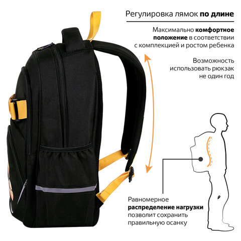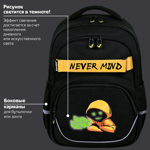 Рюкзак BRAUBERG MOTION, 2 отделения, 3 кармана, "Rebel", СВЕТЯЩИЙСЯ, 41х28х17 см, 271363