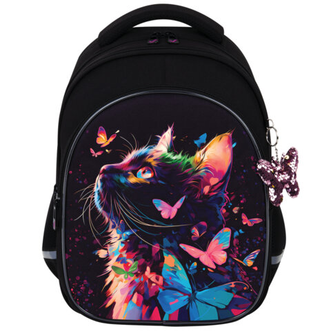Рюкзак BRAUBERG OPTIMA, 2 отделения, с брелоком, "Butterfly catcher", СВЕТЯЩИЙСЯ, 36х27х18 см, 272097