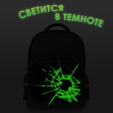 Рюкзак BRAUBERG SOFT, 2 отделения, 3 кармана, "Broken glass", СВЕТЯЩИЙСЯ, 40х31х15 см, 274402