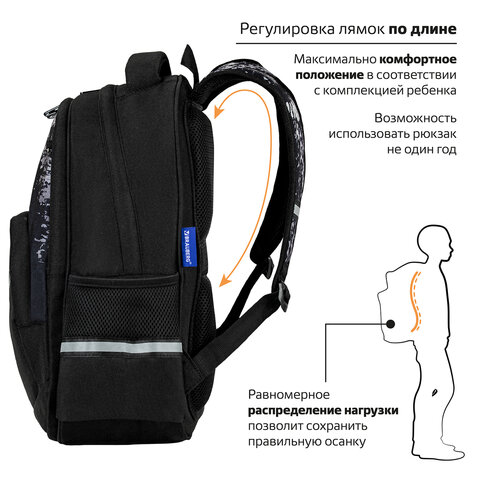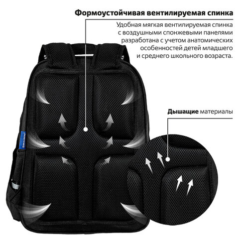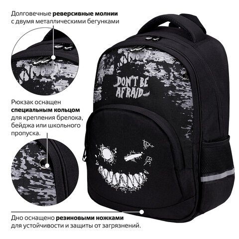 Рюкзак BRAUBERG SOFT, 2 отделения, 3 кармана, "Don't be afraid", СВЕТЯЩИЙСЯ, 40х31х15 см, 271364