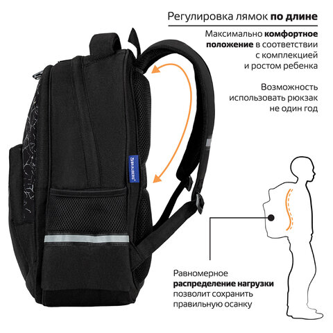 Рюкзак BRAUBERG SOFT, 2 отделения, 3 кармана, "Lettering", СВЕТЯЩИЙСЯ, 40х31х15 см, 272034