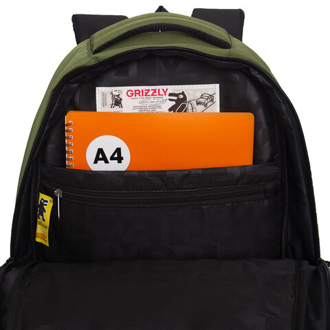 Рюкзак GRIZZLY школьный, анатомическая спинка, 2 отделения, для мальчиков, "RUN", хаки, 45х32х23 см, RU-530-6/3