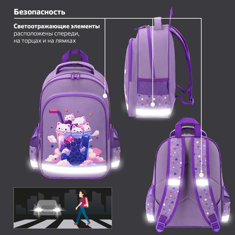 Рюкзак ПИФАГОР SCHOOL, 1 отделение, 3 кармана, "Bubble tea", 38x28х14 см, 273164