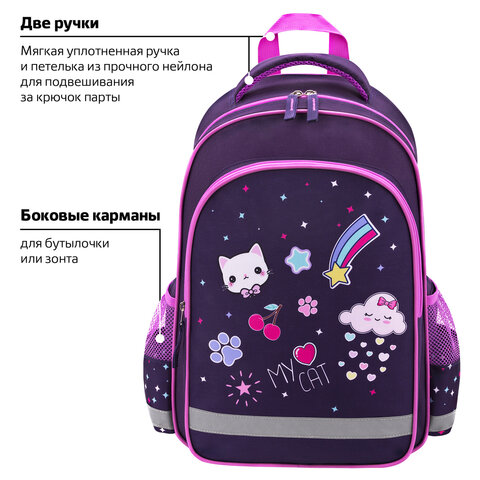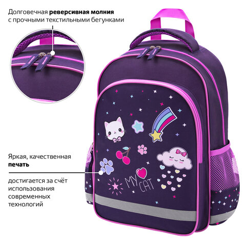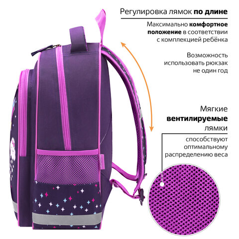 Рюкзак ПИФАГОР серии SCHOOL – оптимальное качество по лучшей цене. Предназначен для учениц начальной школы, выполнен из прочного полиэстера. Уплотненная спинка и лямки с внутренней поверхностью из воздушного спонжа обеспечивают комфорт при носке.