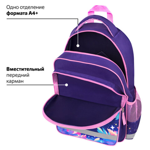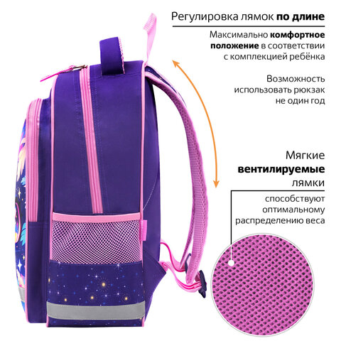 Рюкзак ПИФАГОР серии SCHOOL – оптимальное качество по лучшей цене. Предназначен для учениц начальной школы, выполнен из прочного полиэстера. Уплотненная спинка и лямки с внутренней поверхностью из воздушного спонжа обеспечивают комфорт при носке.