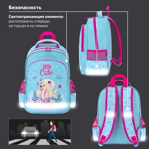 Рюкзак ПИФАГОР SCHOOL, 1 отделение, 3 кармана, "Pretty bunny", 38x28х14 см, 273168