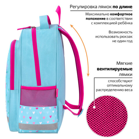 Рюкзак ПИФАГОР серии SCHOOL – оптимальное качество по лучшей цене. Предназначен для учениц начальной школы, выполнен из прочного полиэстера. Уплотненная спинка и лямки с внутренней поверхностью из воздушного спонжа обеспечивают комфорт при носке.