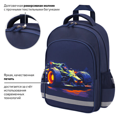 Рюкзак ПИФАГОР SCHOOL, 1 отделение, 3 кармана, "Speed bolid", 38x28х14 см, 273170