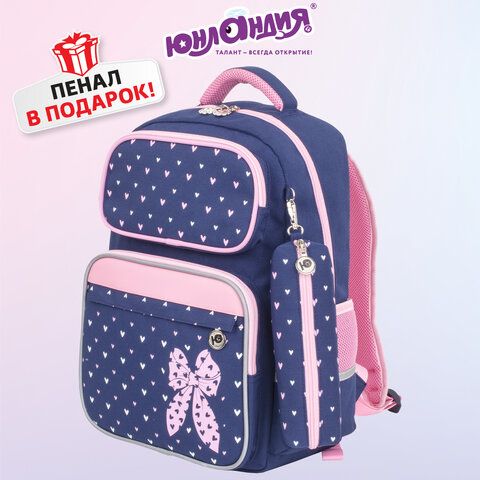 Рюкзак ЮНЛАНДИЯ COMPLETE с пеналом в комплекте, эрго-спинка, "Pink bow", 42х29х14 см, 229972