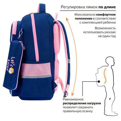 Рюкзак ЮНЛАНДИЯ COMPLETE с пеналом в комплекте, эрго-спинка, "Relaxing cats", 42х29х14 см, 273121