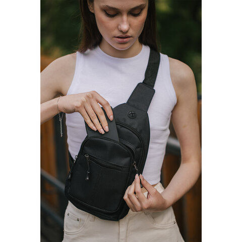 Рюкзак однолямочный HEIKKI PROMPT (ХЕЙКИ), 2 отделения, черный, 30х16х6 см, 273926