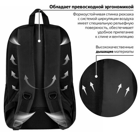 Рюкзак BRAUBERG DELTA универсальный, 2 отделения, "Navigator", черный, 45х30х17 см, 225291