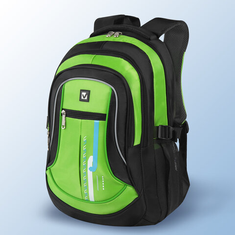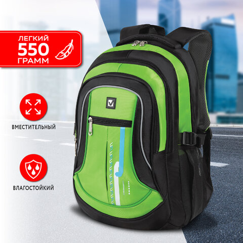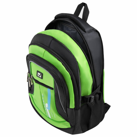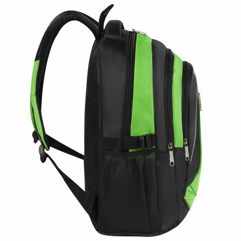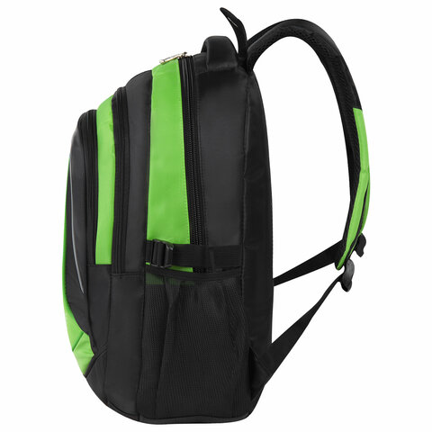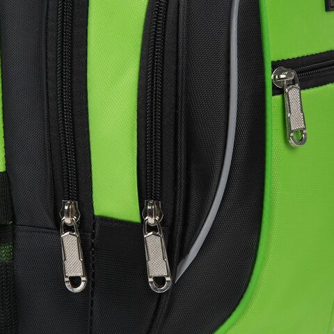 Рюкзак BRAUBERG HIGH SCHOOL универсальный, 3 отделения, "Лайм", черный/салатовый, 46х31х18 см, 225524