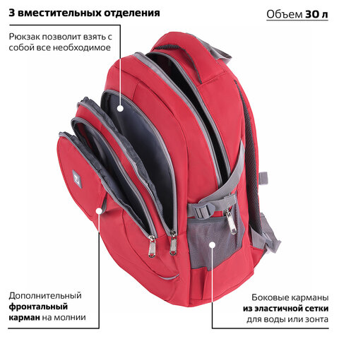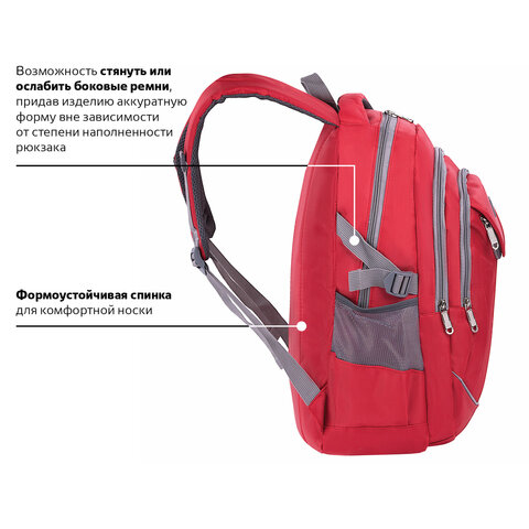 Рюкзак BRAUBERG HIGH SCHOOL универсальный, 3 отделения, "Рассвет", красный, 46х31х18 см, 225522