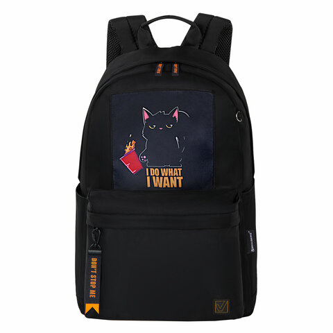 Рюкзак BRAUBERG FASHION CITY универсальный, карман-антивор, Cat, черный, 44х31х16 см, 272569