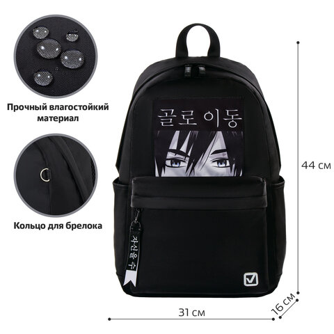 Рюкзак BRAUBERG FASHION CITY, универсальный, карман-антивор, "Anime View", черный, 44х31х16 см, 229964