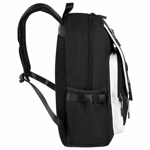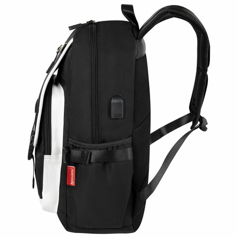 Рюкзак BRAUBERG FUSION универсальный, USB-порт, черный с белыми вставками, 45х31х15 см, 271657