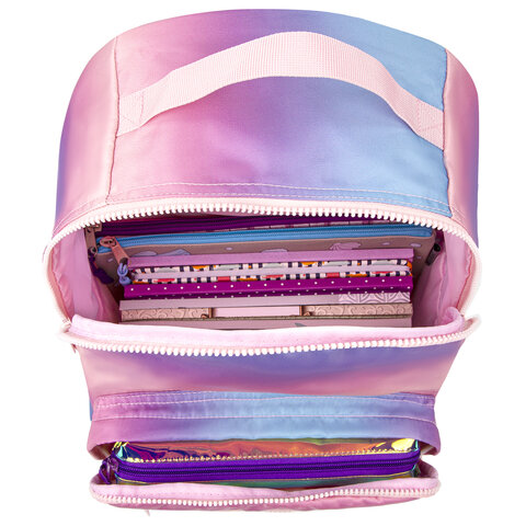 Стильный рюкзак с трендовым градиентным дизайном выполнен из качественного материала - нейлон. Вместительное отделение позволяет иметь при себе все необходимые вещи. Удобные карманы на передней стенке для быстрого доступа к необходимым вещам.