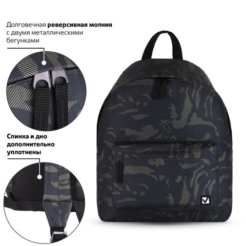 Рюкзак BRAUBERG СИТИ-ФОРМАТ универсальный, "Black camouflage", черный, 41х32х14 см, 225367