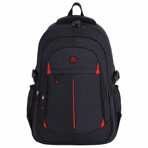 Рюкзак BRAUBERG TITANIUM универсальный, 3 отделения, черный, красные вставки, 45х28х18 см, 226376