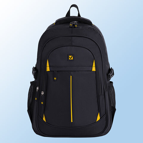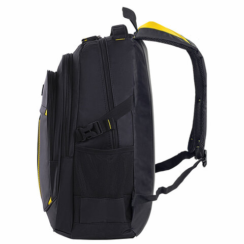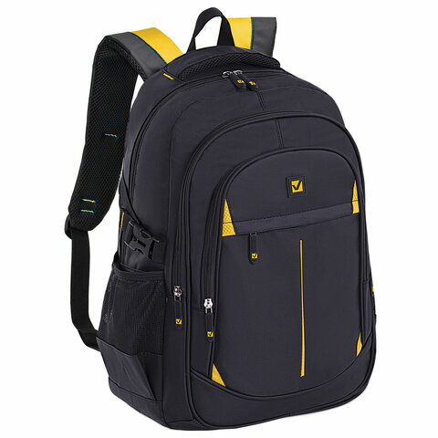 Рюкзак BRAUBERG TITANIUM универсальный, 3 отделения, черный, желтые вставки, 45х28х18 см, 224385