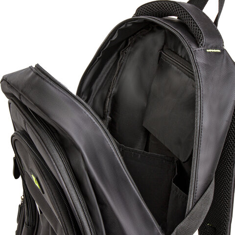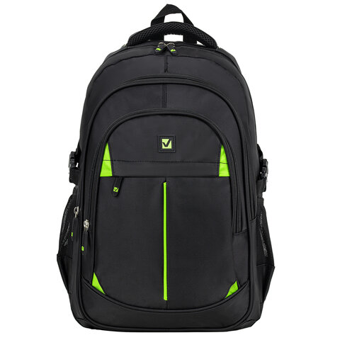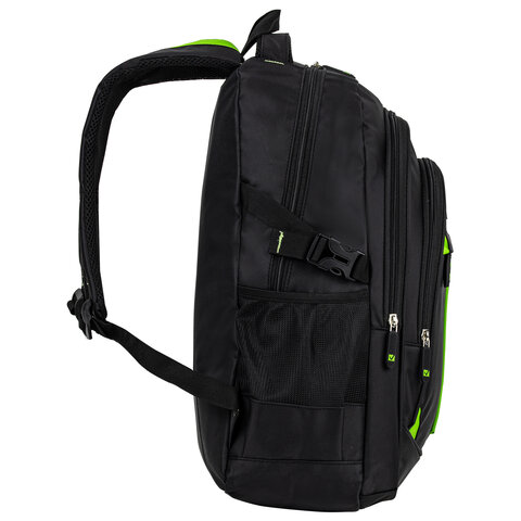 Рюкзак BRAUBERG TITANIUM универсальный, 3 отделения, черный, салатовые вставки, 45х28х18 см, 270766