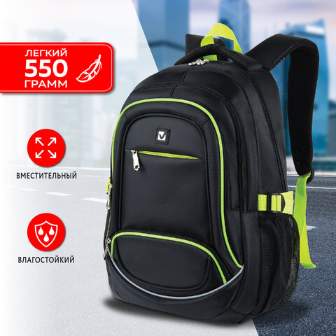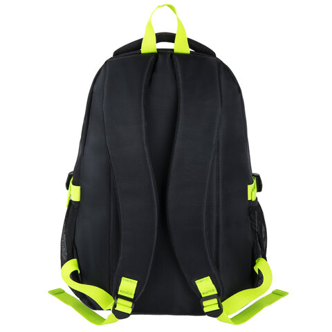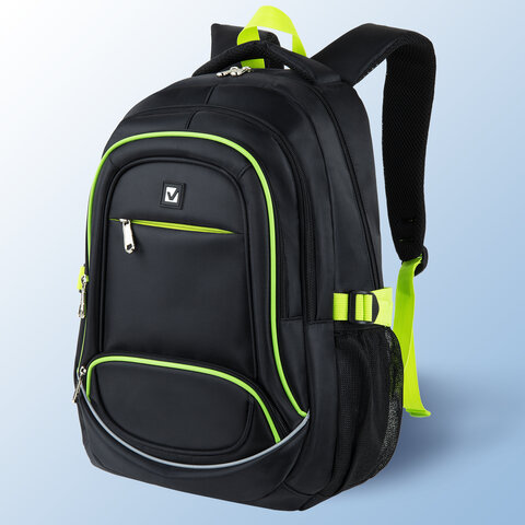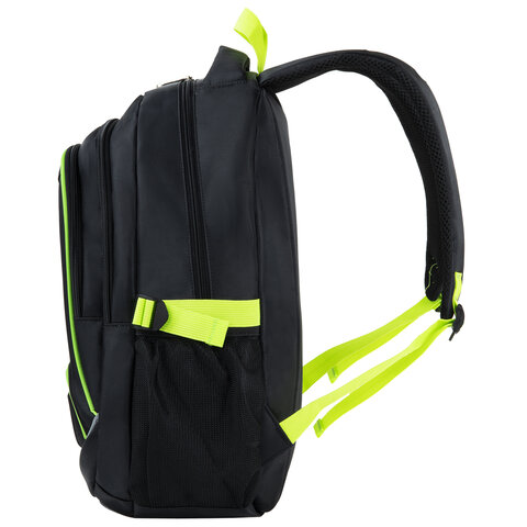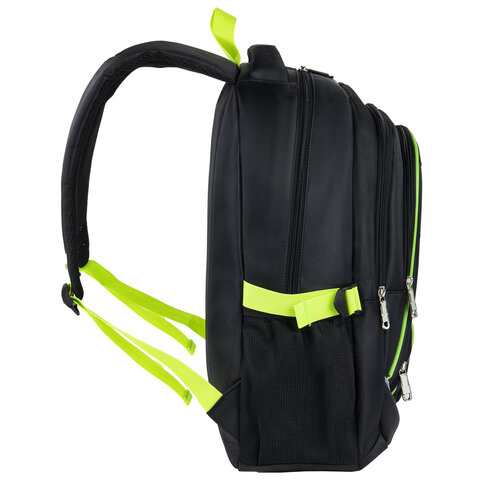 Рюкзак BRAUBERG HIGH SCHOOL универсальный, 3 отделения, "Акцент", черный/салатовый, 46х31х18 см, 270761