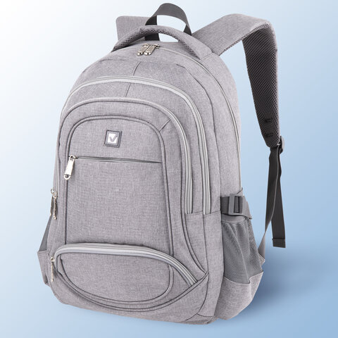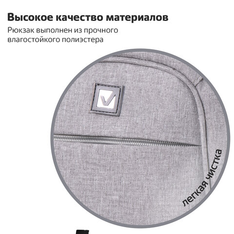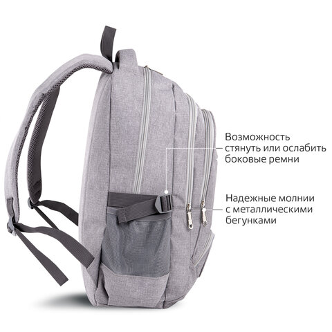 Рюкзак BRAUBERG HIGH SCHOOL универсальный, 3 отделения, "Туман", светло-серый, 46х31х18 см, 270762