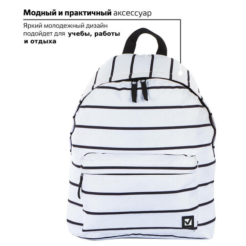Рюкзак BRAUBERG СИТИ-ФОРМАТ универсальный, "Strip", белый в полоску, 41х32х14 см, 228846