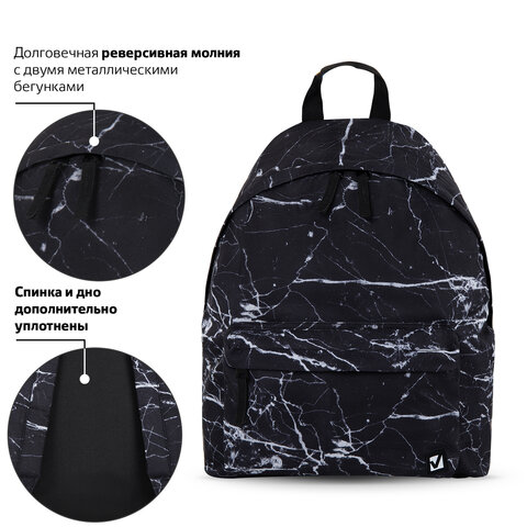 Рюкзак BRAUBERG СИТИ-ФОРМАТ универсальный, "Black marble", черный, 41х32х14 см, 270790