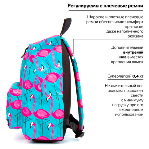 Рюкзак BRAUBERG СИТИ-ФОРМАТ универсальный, "Flamingo", разноцветный, 41х32х14 см, 228854