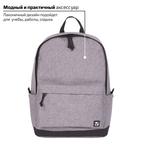 Рюкзак BRAUBERG URBAN универсальный, "Grey Melange", серый, 43х30х17 см, 228842