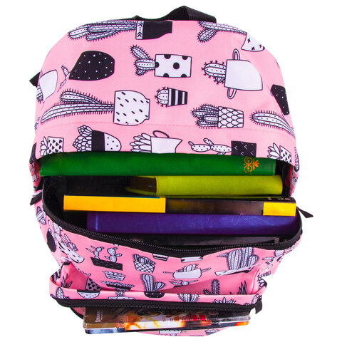 Рюкзак BRAUBERG СИТИ-ФОРМАТ универсальный, "Kaktusy", розовый, 41х32х14 см, 228859