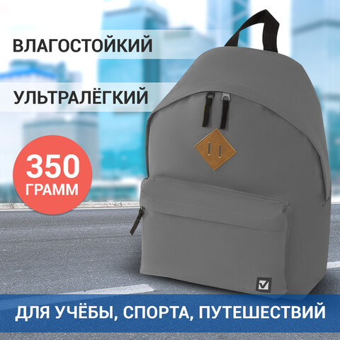 Рюкзак BRAUBERG СИТИ-ФОРМАТ один тон, универсальный, серый, 41х32х14 см, 225380