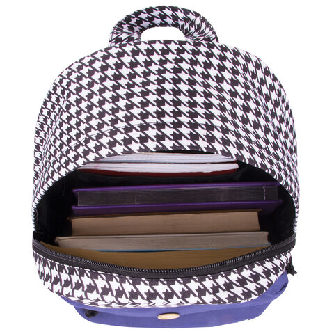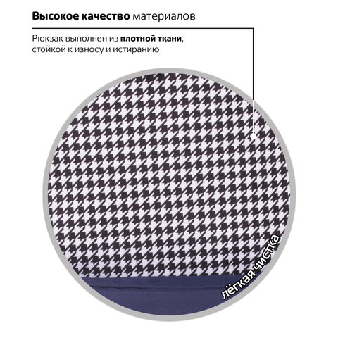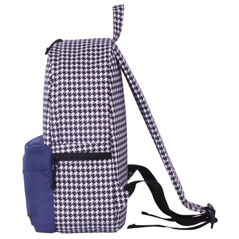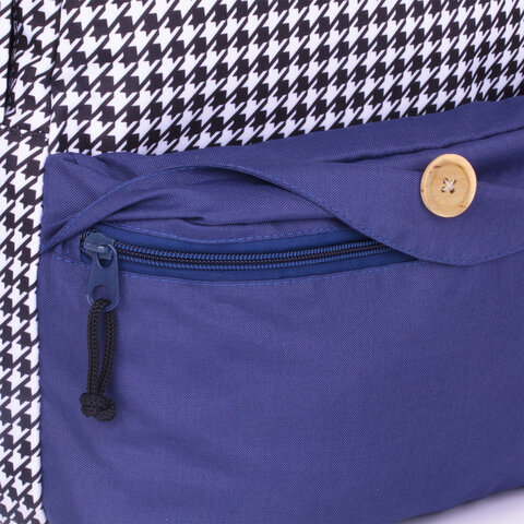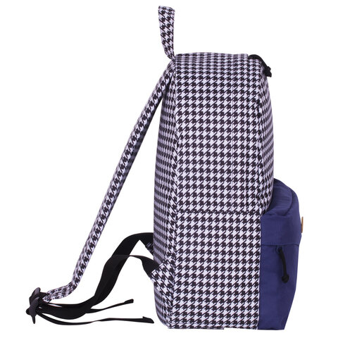 Рюкзак BRAUBERG SYDNEY универсальный, карман с пуговицей, бело-синий, узор клетка, 38х27х12 см, 228840