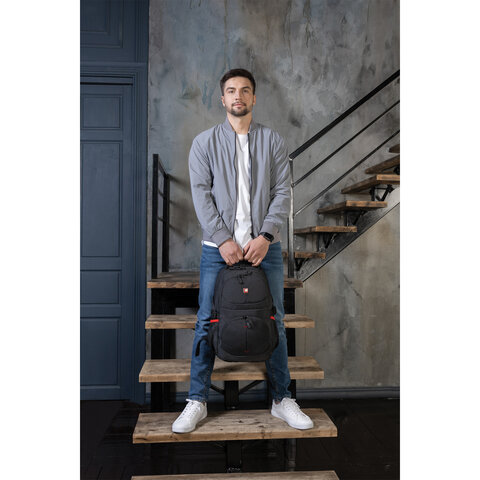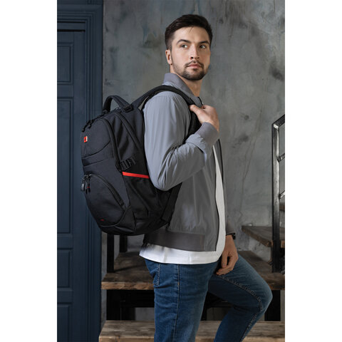 Рюкзак GERMANIUM "S-06" универсальный, уплотненная спинка, облегченный, черный, 46х32х15 см, 226953