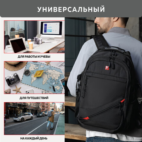 Рюкзак GERMANIUM "S-01" универсальный, с отделением для ноутбука, влагостойкий, черный, 47х32х20 см, 226947