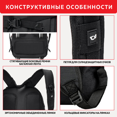 Рюкзак GERMANIUM "S-03" универсальный, с отделением для ноутбука, увеличенный объем, черный, 46х32х26 см, 226949