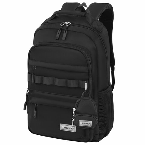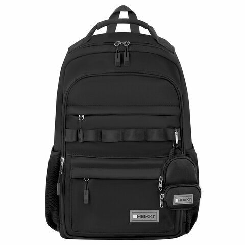 Рюкзак HEIKKI FUSION (ХЕЙКИ) универсальный, 2 отделения, отделение для ноутбука, c КОШЕЛЬКОМ, черный, 44х31х14 см, 273866