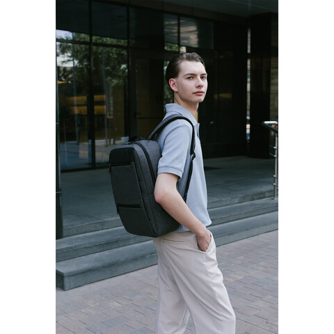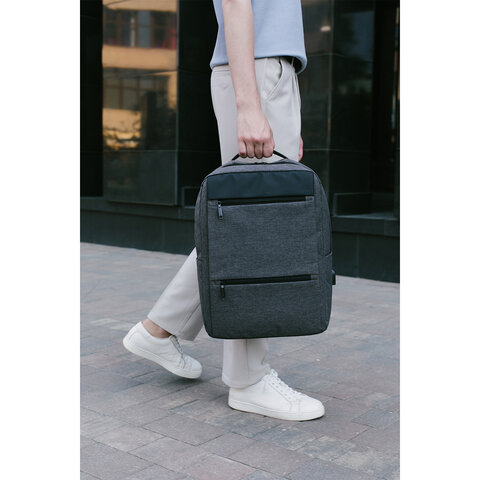 Рюкзак HEIKKI PANEL (ХЕЙКИ), отделение для ноутбука, USB-порт, серый, 44x30x13 см, 273903