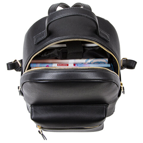Рюкзак из экокожи BRAUBERG PODIUM женский, с отделением для планшета, черный, 34x25x13 см, 270817