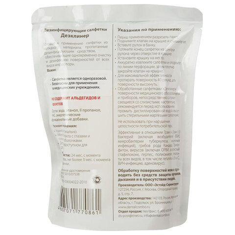 Сменный блок салфеток ДЕЗКЛИНЕР из нетканого материала, пропитаны дезинфицирующим средством, обеспечивают одновременную защиту и дезинфекцию поверхностей от всех видов микрофлоры.