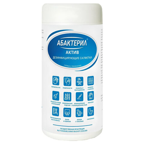 Дезинфицирующие спиртовые салфетки АБАКТЕРИЛ-АКТИВдля обработки рук и поверхностей.